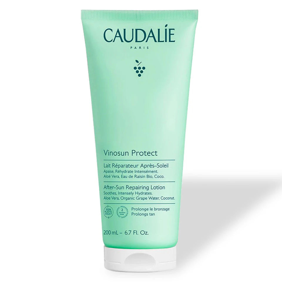 A restorative after-sun lotion infused with aloe vera extract, organic grape water, and coconut oil to deeply hydrate and calm the skin after exposure to the sun.