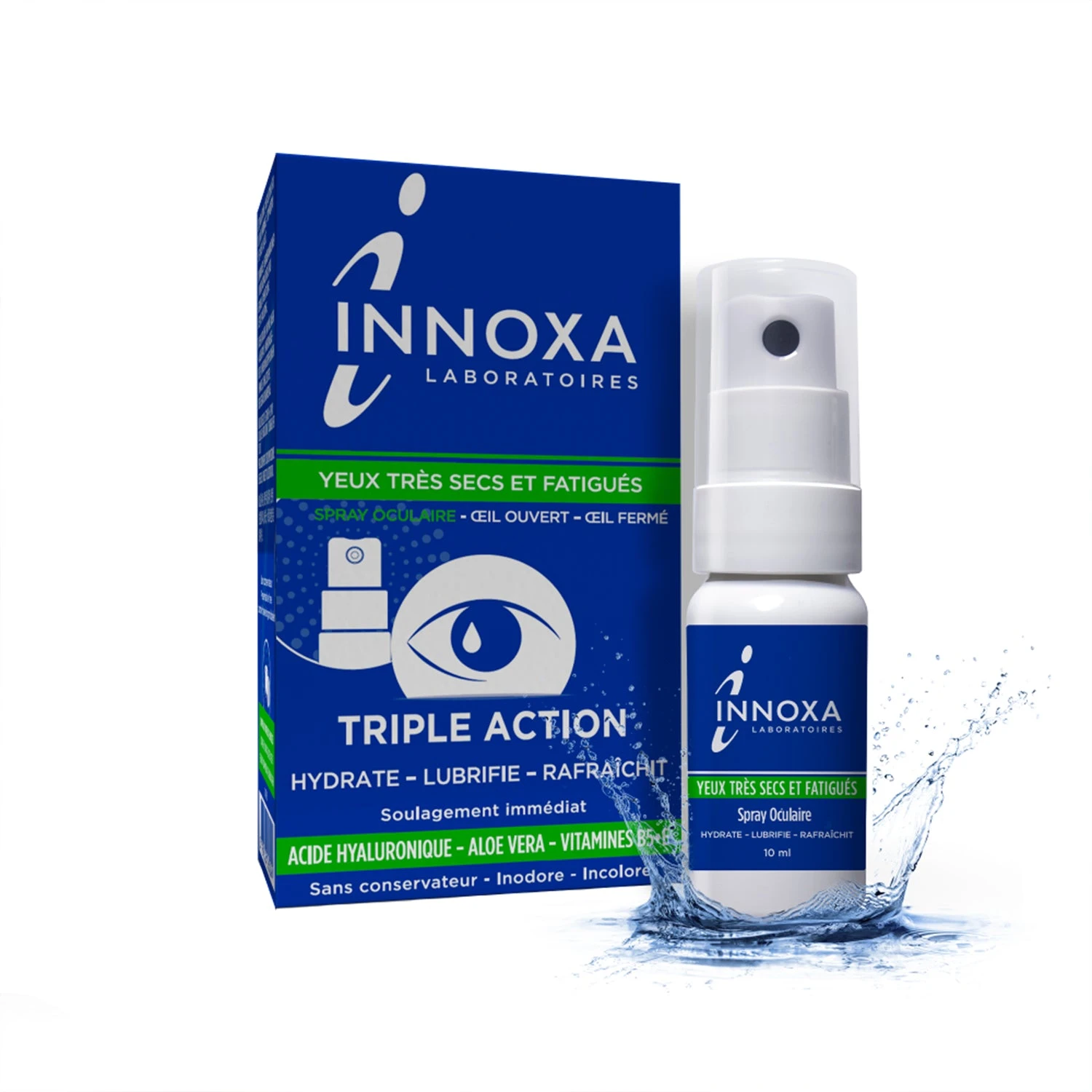 Eye spray that hydrates lubricates and refreshes very dry and tired eyes with a gentle formulation that can be easily sprayed on open or closed eyes.